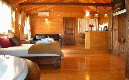 בסוויטה המפנקת והרומנטית עיצוב מיוחד המבטיח את הנאתכם: ג’קוזי זוגי עגול מרווח הניצב על במת עץ, חדר שינה עם טלוויזיה בלוויין מול מיטה זוגית נוחה, מזגן, פינת ישיבה רומנטית נוחה, מטבח מאובזר, LCD 43 אינץ’ בלוויין, מערכת קולנוע ביתית.